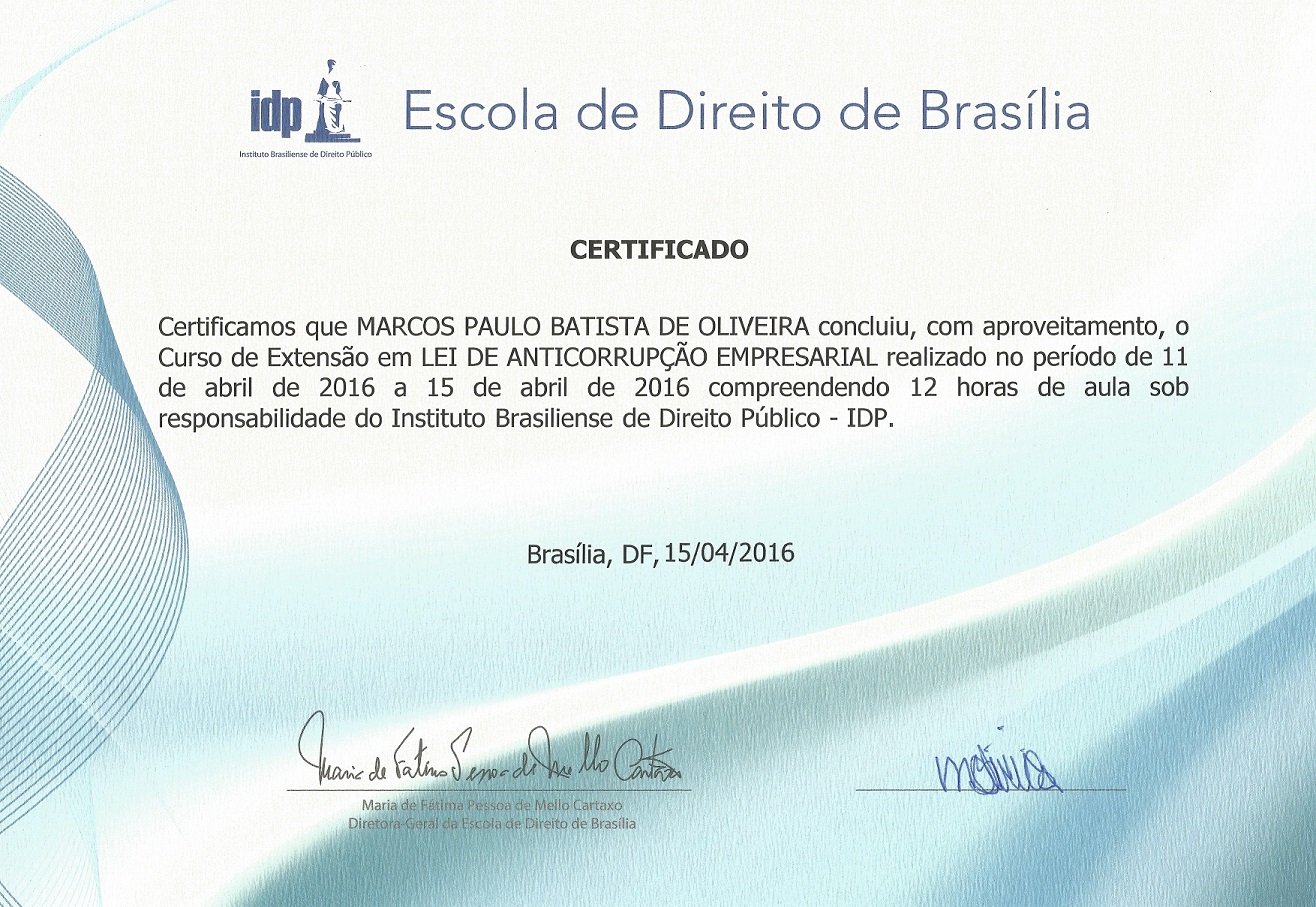 11 a 15.04.16 – Curso de Extensão – Lei de Anticorrupção Empresarial nº 12.846/2013 – IDP – Brasília – DF