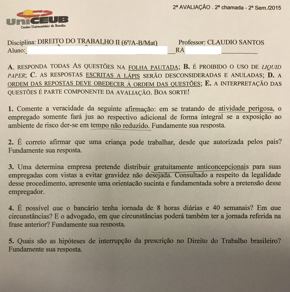 2ª Prova de Direito do Trabalho II – 9º Semestre – Menção – ‘MM’