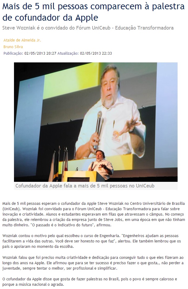 ps.: Consegui conciliar a palestra do Steve Wozniak com a do profº Luiz Flávio Gomes.
