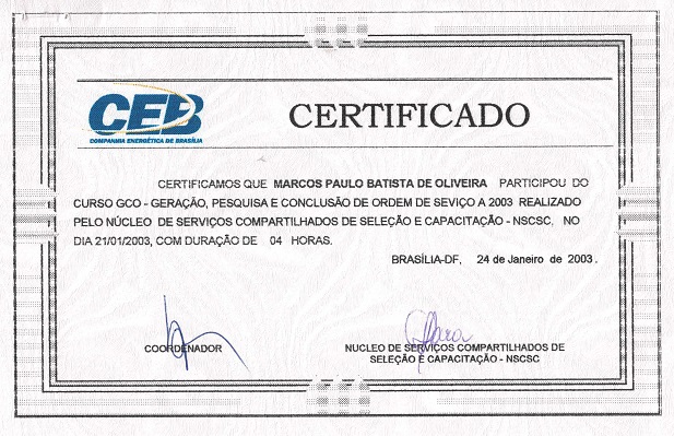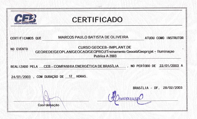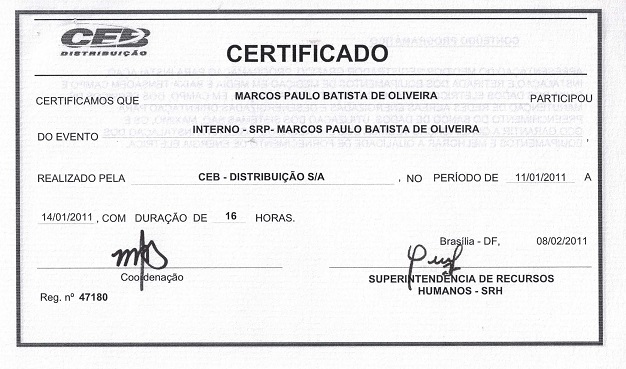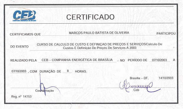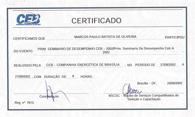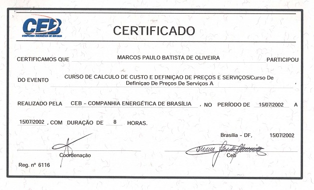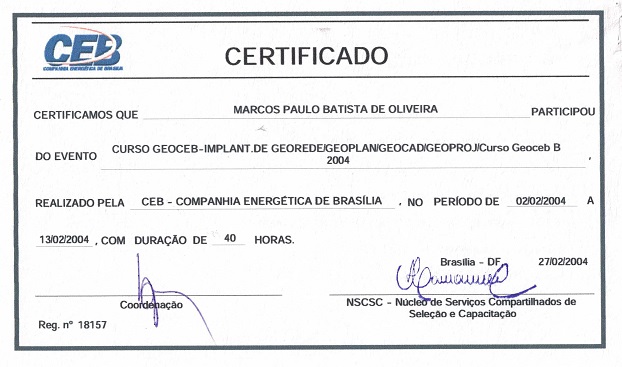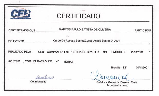 * De 1998 até … – Cursos Internos CEB – Brasília – DF