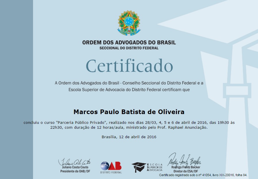 28/03, 04, 05 e 06.04.16 – Curso – Parceria Público Privado – ESA – Brasília – DF