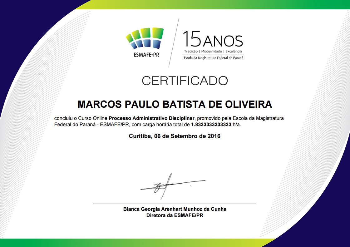 28/08/16 – Curso Online de Processo Administrativo Disciplinar – PAD – ESMAFE/PR