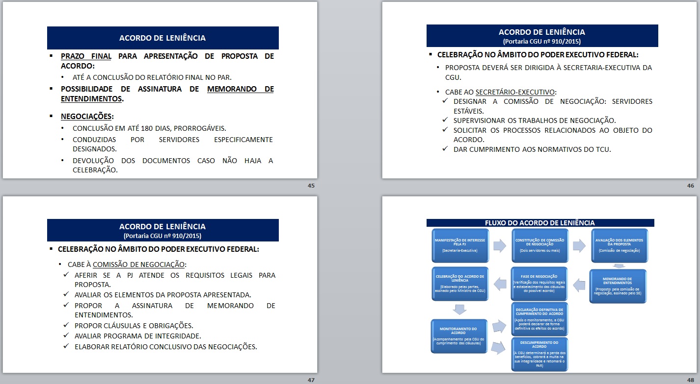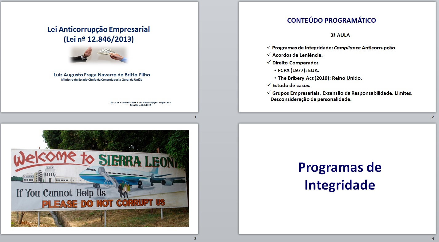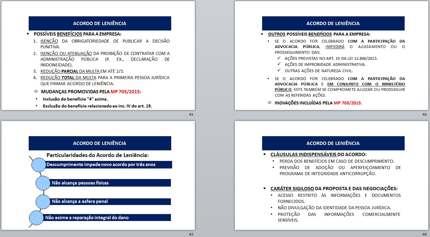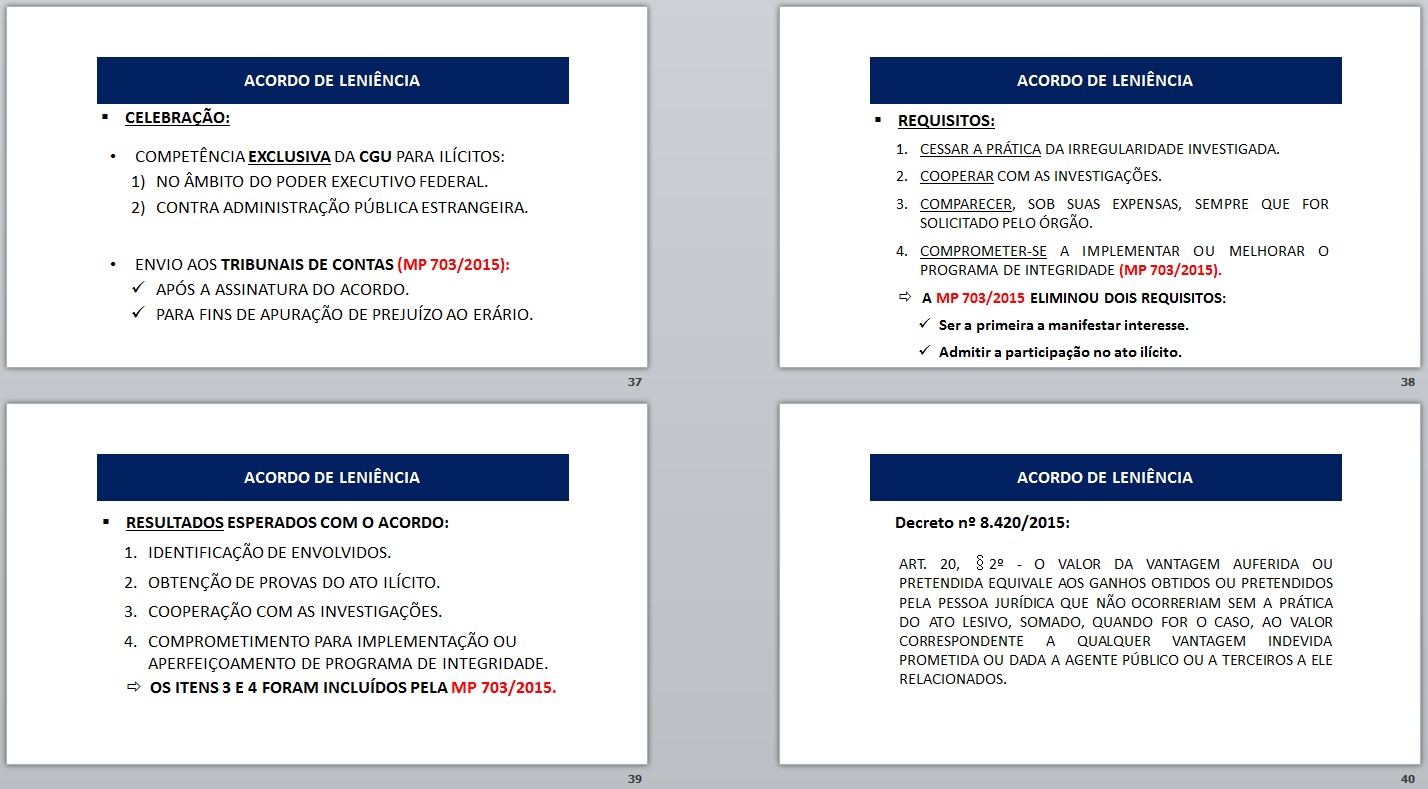 Este último dia de curso sobre a lei anticorrupção, ficou a cargo do atual Ministro Chefe da CGU (Controladoria Geral da União), que tratou, com muita competência, do Capítulo V da Lei nº 12.846/13, que trata dos acordos de leniência…