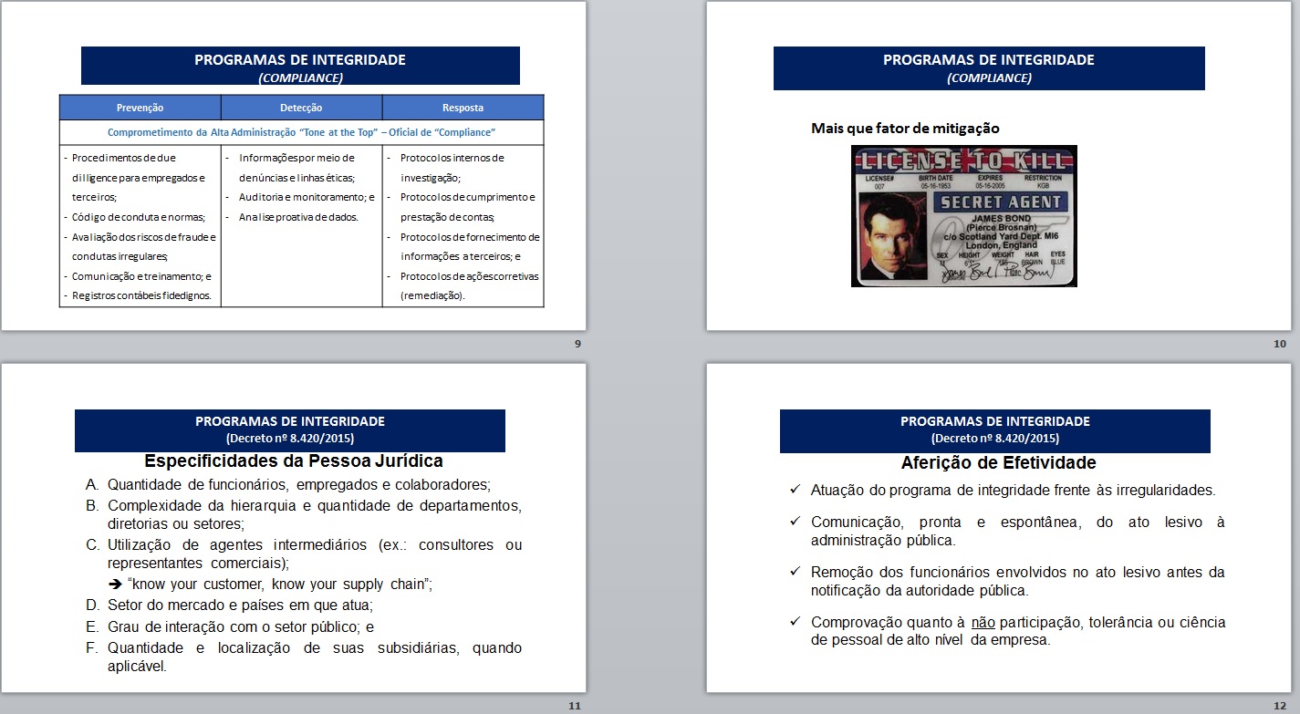 “Ao invés de dizer ‘eu não sabia’ (pois não vai adiantar, uma vez que a responsabilidade é objetiva), diga ‘eu fiz de tudo para que não acontecesse, inclusive temos um excelente programa de compliance, mas infelizmente aconteceu'”