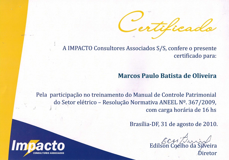 31.08.10 – Curso – Manual de Controle Patrimonial do Setor Elétrico – Resolução ANEEL nº 367/2009 – Brasília – DF
