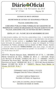 Diário Oficial do Estado de Mato Grosso – Resultado Final do Concurso – Homologação 2018.