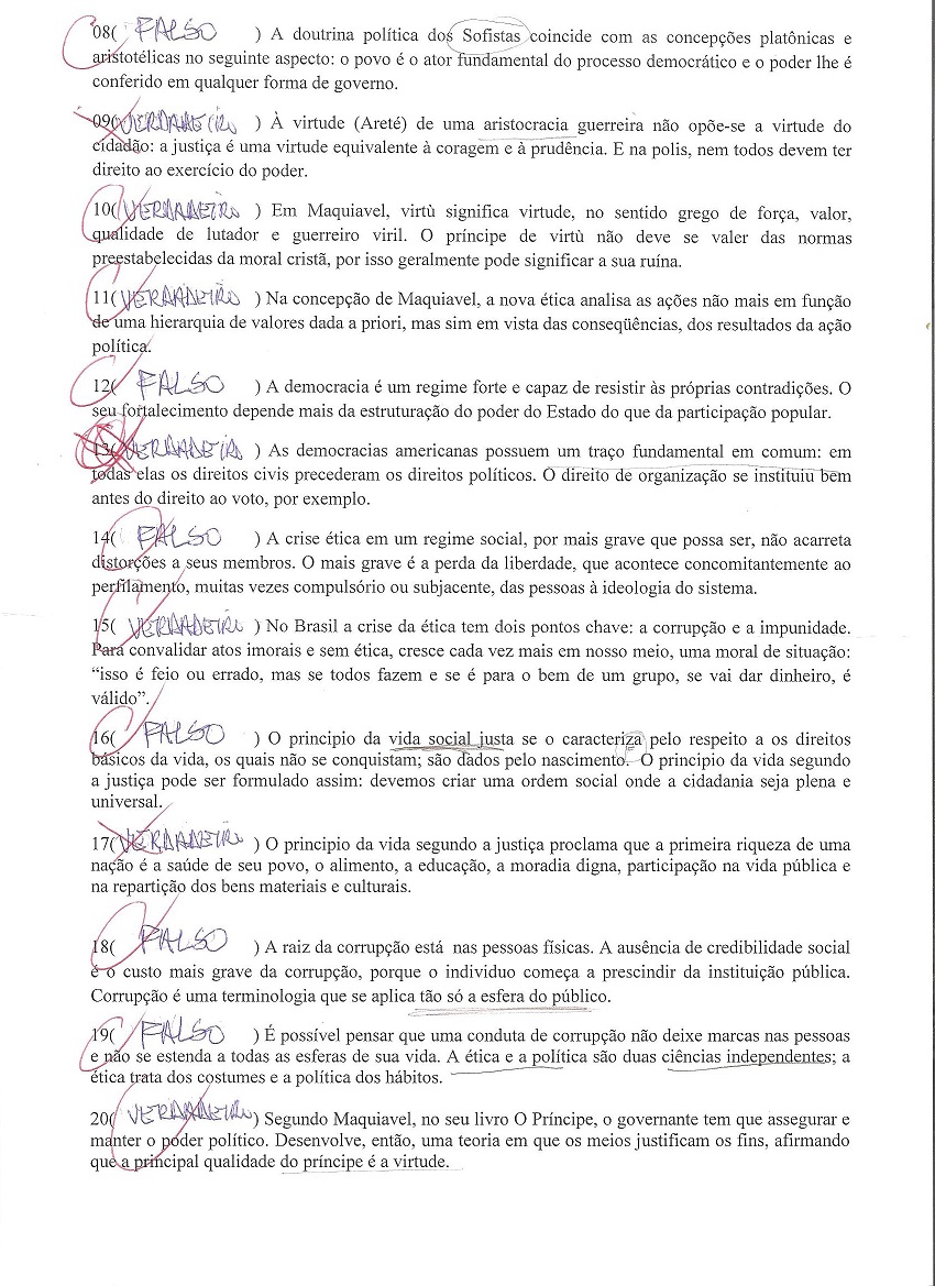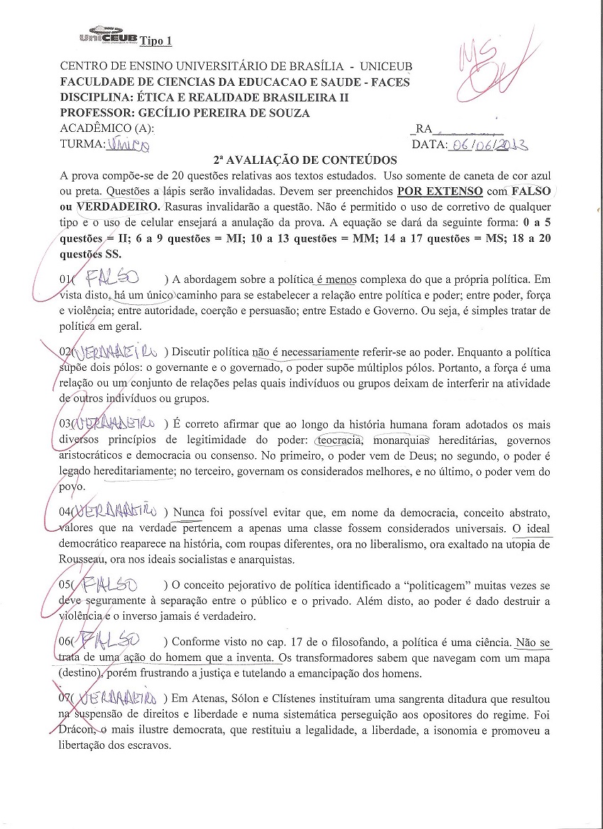 2ª Prova de Ética II – 4º Semestre – Menção ‘MS’