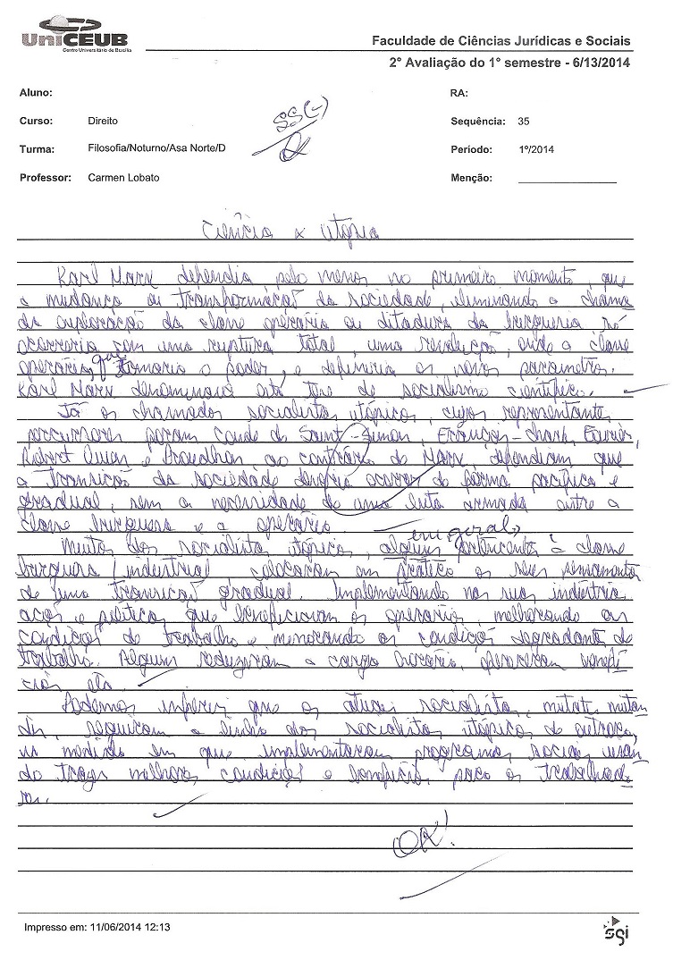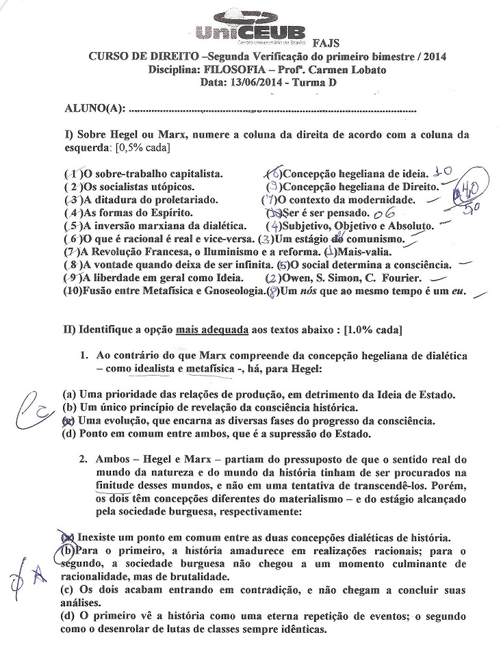 2ª Prova de Filosofia – 6º Semestre – Menção ‘SS’