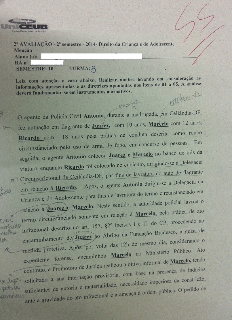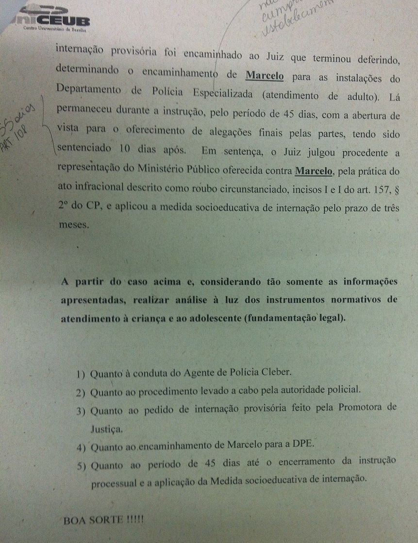 2ª Prova de Direito da Criança e do Adolescente – 7º Sem. – Menção – ‘SS’