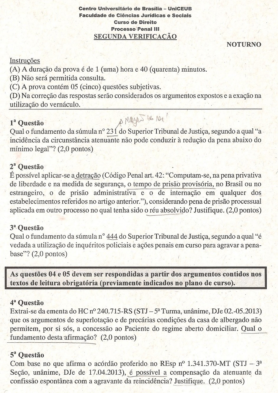 2ª Prova de Direito Processual Penal III – 8º Semestre – Menção – ‘MM’