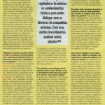Fiz questão de deixar aqui registrado a excelente e sensata (para não dizer óbvia) entrevista do Dr. Egon, publicada na edição nº 2291 da revista Veja… onde desnuda o mal da indicação política de ‘companheiros’ em postos chaves da máquina administrativa… A atual realidade da grande maioria das empresas estatais do Distrito Federal (vide resultados pífios e o volume crescente de multas aplicadas por órgãos reguladores, por exemplo), infelizmente, corrobora as palavras do entrevistado. Algumas empresas da Capital Federal se transformaram em verdadeiros ‘cabideiros’ repletos de ‘pseudos’ gestores/executivos, que se sentido os ‘paladinos’ da eficiência e arrogância, se aventuram a implementar ações desastradas e projetos totalmente desconexos dos modelos da boa gestão e eficiência, o que, já tem provocado inúmeras consequências danosas para a população do Distrito Federal… Espero viver um dia em que o Brasil se paute pela meritocracia e não tenhamos, como solução para este mal, ‘apenas’ o poder do voto! (sim, esquecem estes ‘gestores’ que a cada 4 anos a população tem o direito constitucional de avaliar os resultados obtidos, renovando ou não os seus contratos de trabalho).