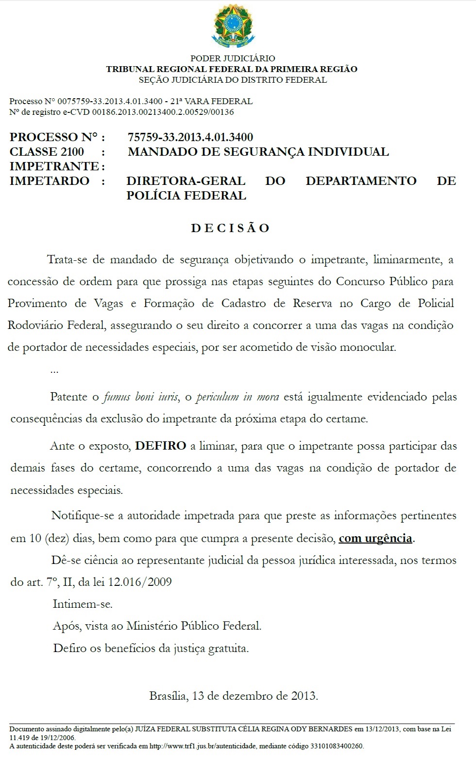 ← FBI é obrigado, a exemplo do que vai ocorrer com a PCDF, PF e PRF, a aceitar deficientes em seus quadros – janeiro/2014