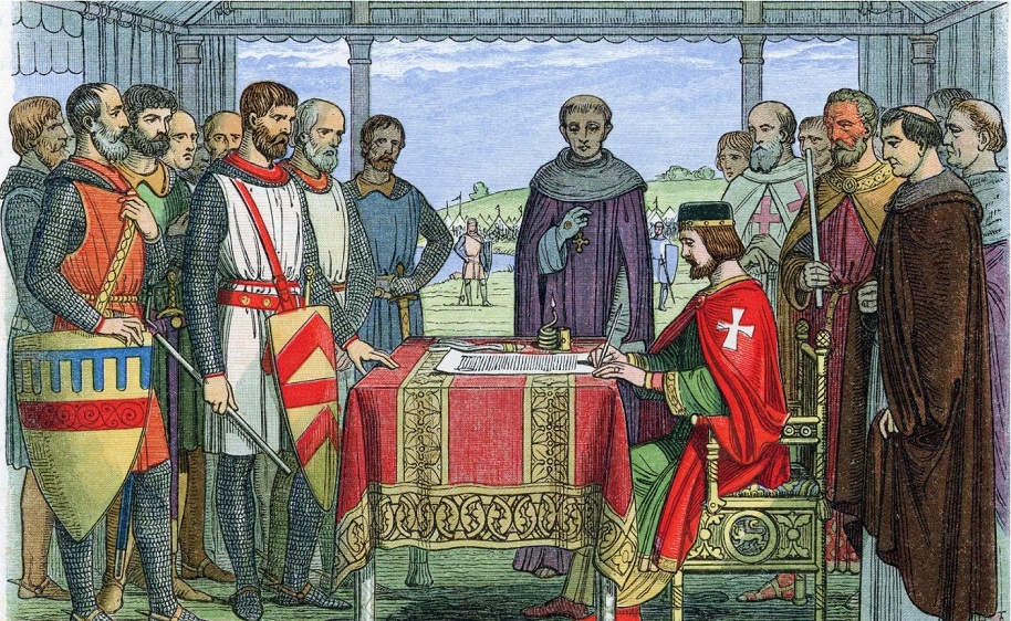 This year, 2015, is the 800th anniversary of Magna Carta. It was on 15 June 1215 that King John, in the meadow of Runnymede beside the Thames between Windsor and Staines, sealed (not signed) the document now known as the Magna Carta. Today, jets taking off from London Heathrow airport come up over Runnymede and then often turn to fly down its whole length before vanishing into the distance. Yet it is not difficult to imagine the scene, during those tense days in June 1215, when Magna Carta was being negotiated, the great pavilion of the king, like a circus top, towering over the smaller tents of barons and knights stretching out across the meadow.