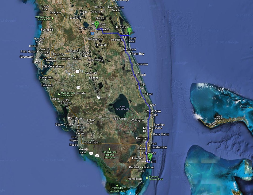 Último dia de Miami, pelo menos para os amigos Kareca e Graciella (que de Orlando embarcam diretamente para Las Vegas)… Fizemos este trecho de pouco mais 450Km, passando pelo Cabo Canaveral, de carro… Muito bom!!! estrada e paisagem espetaculares… pistas triplicadas, sem nenhum pedágio e com total segurança!