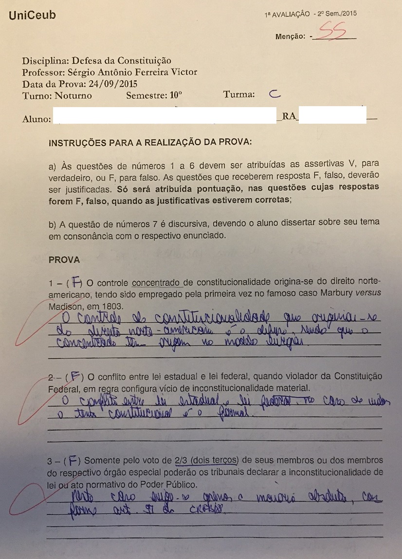 1ª Prova de Defesa da Constituição – 9º Semestre – Menção – ‘SS’