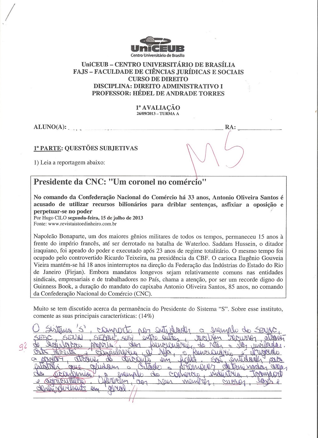 1ª Prova de Direito Administrativo I – 5º Semestre – Menção ‘MS’