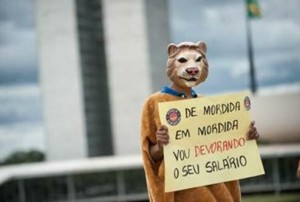 Protesto da Força Sindical com o “leão” do IR: quem pode, paga muito pouco ou quase nada ao fisco brasileiro.