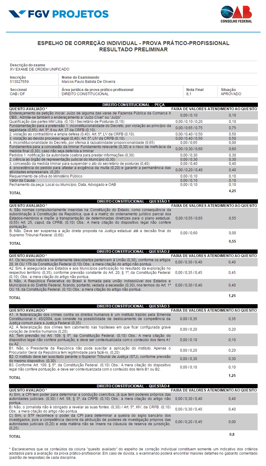 Muito feliz! Sensação de dever cumprido! O resultado do XV Exame da OAB foi publicado hoje e, com um surpreendente 8.1 (esperava algo entre 6.5 e 7.0), obtive aprovação!