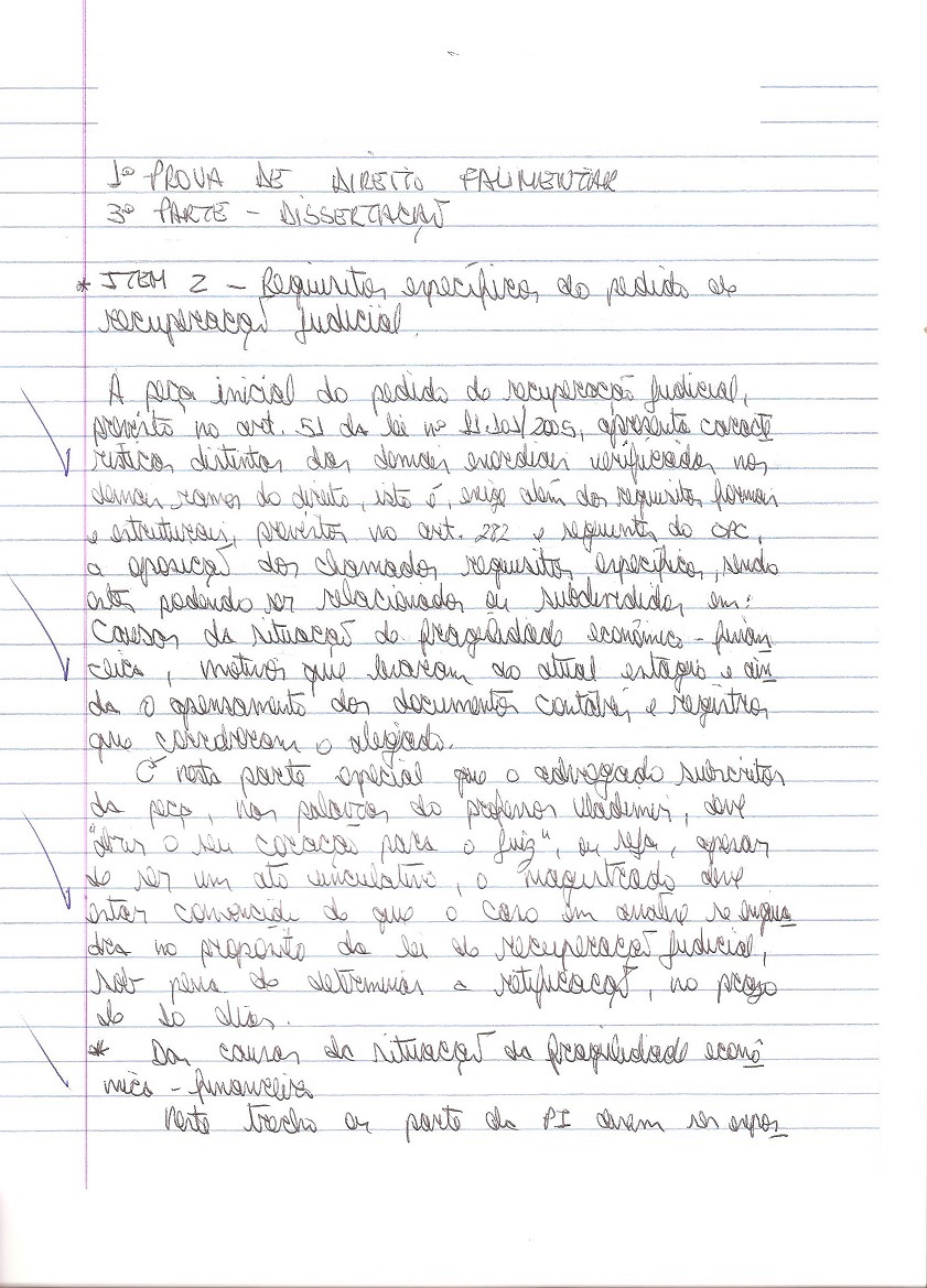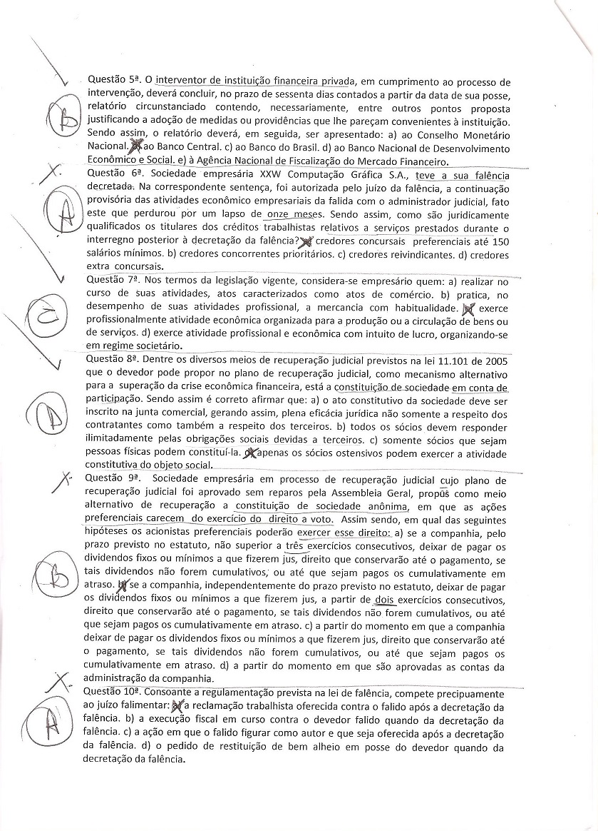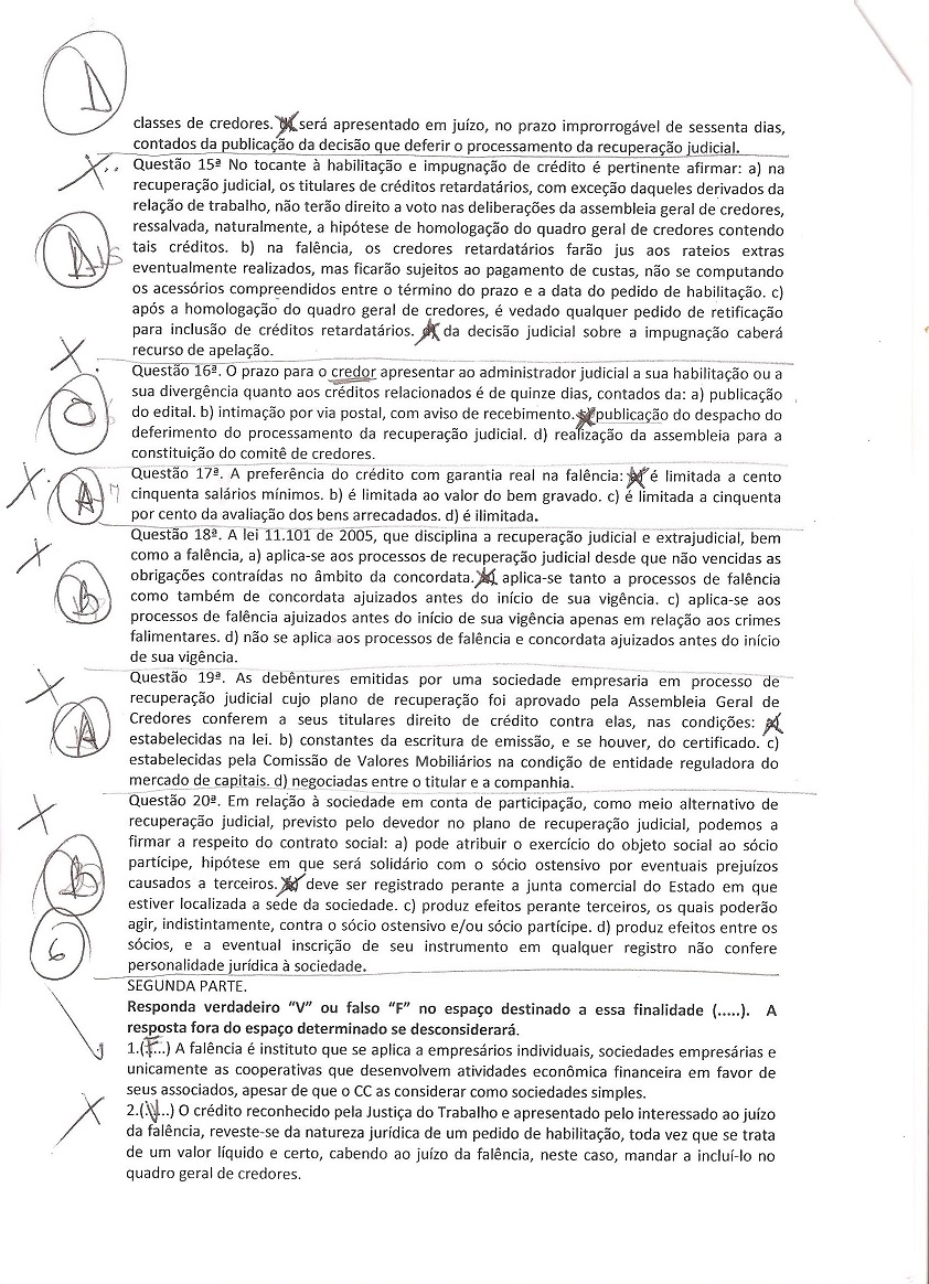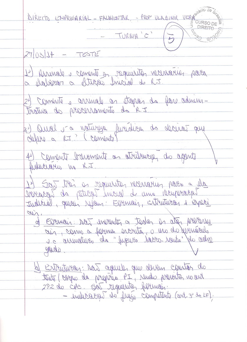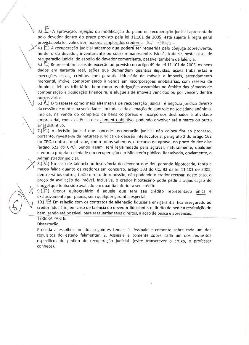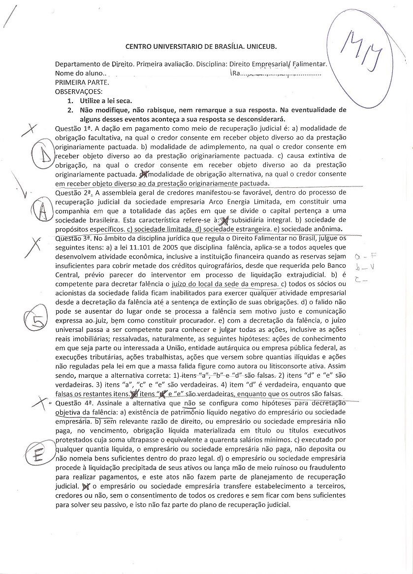 1ª Prova de Direito Empresarial – Falimentar – 6º Semestre – Menção ‘MM’