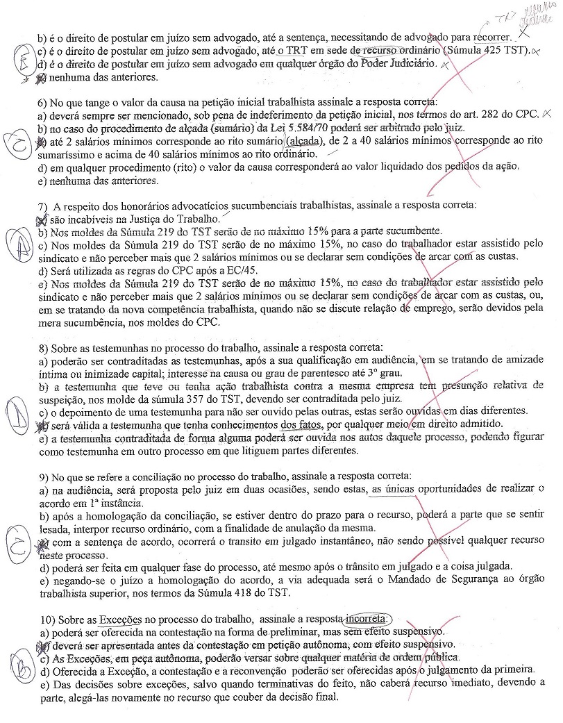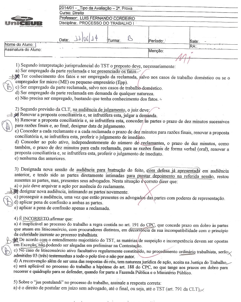 2ª Prova de Direito Processual do Trabalho I – 6º Semestre – Menção ‘MI’