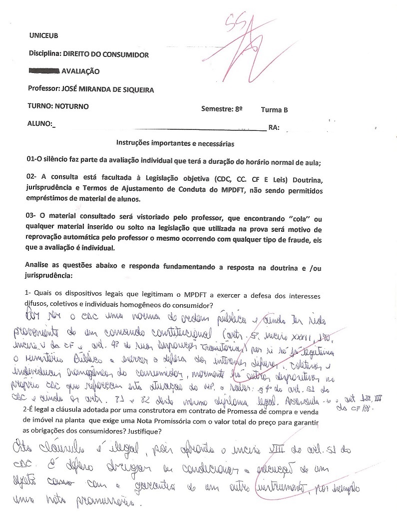 2ª Prova de Direito do Consumidor – 6º Semestre – Menção ‘SS’