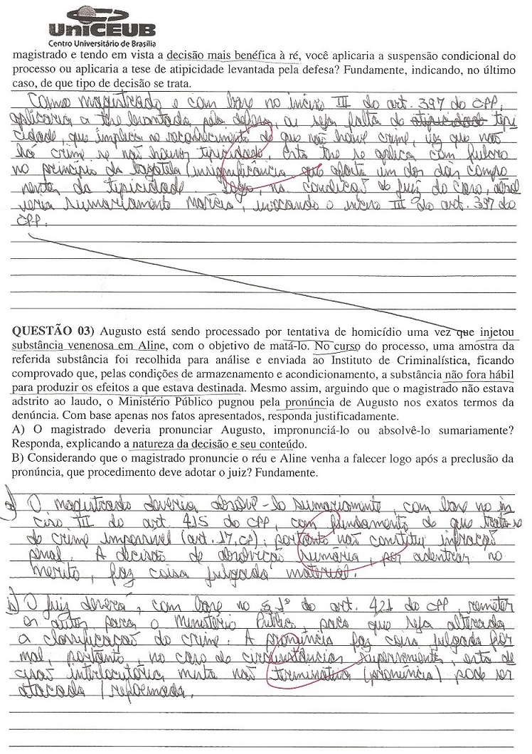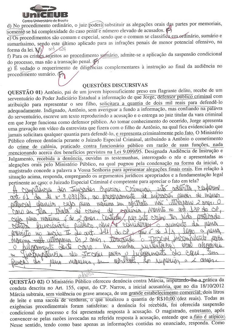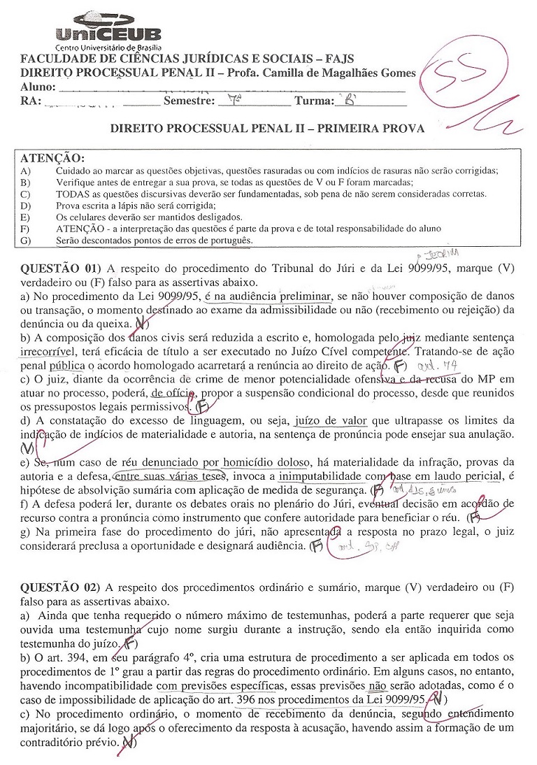 1ª Prova de Direito Processual Penal II – 7º Semestre – Menção – ‘SS’