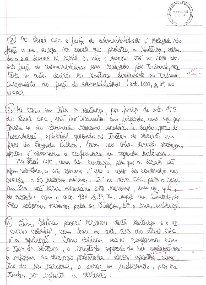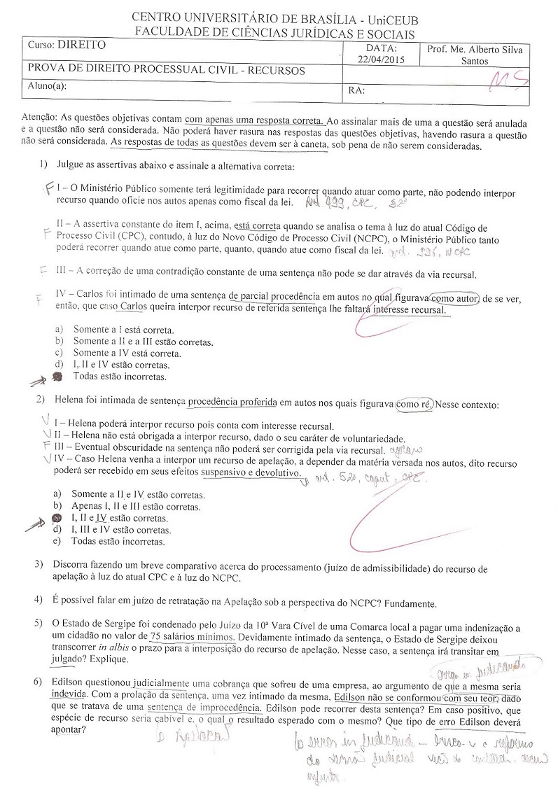 1ª Prova de Dir. Processual Civil – Recursos – 8º Semestre – Menção – ‘MS’
