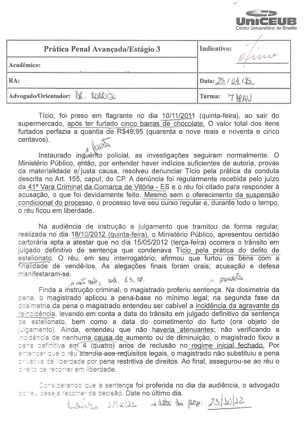 Algo me diz que esta será a peça a ser cobrada na segunda avaliação, agendada para o próximo sábado, dia 23.05.15.