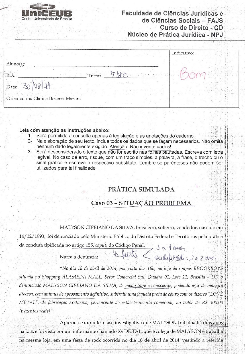 Nesta aula foi corrigida a peça elaborada no encontro do dia 23.08.14, queixa-crime, e entregue no dia 30.08.14. Também foi tratado do instituto de Resposta à Acusação, sendo feito a distribuição de um outro caso, com a solicitação de elaboração da respectiva peça.