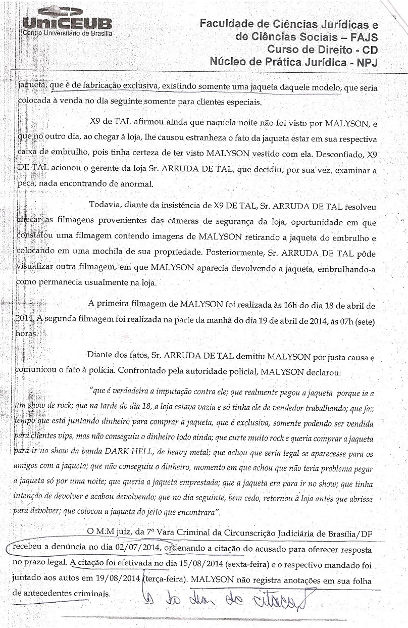 CONTRA, INVEJOSO DE OLIVEIRA, brasileiro, solteiro, portador do RG nº 215342 SSP/DF, enfermeiro, residente de domiciliado na QNN-20, casa 15, conjunto ‘J’, Ceilândia – DF.