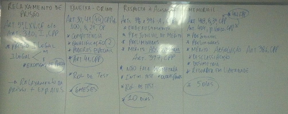 Na primeira metade deste encontro foi tratado do rito especial da Lei nº 11.343/06, também conhecida como Lei de Drogas… ato contínuo foi proposto uma situação problema para o desenvolvimento de uma peça, cuja fundamentação principal exige a aplicação da Lei de Drogas… a indicação da peça é memoriais.
