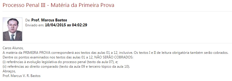 Optei por faltar a esta aula para que eu pudesse me dedicar ao máximo na conclusão do trabalho de Monografia III, que tem prazo para depósito até a próxima sexta-feira, dia 10.04.15. #GásFinal #Oremos