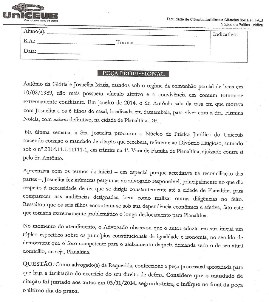A aula de hoje foi rápida e tratou do instituto da EXCEÇÃO DE INCOMPETÊNCIA. Foi feita uma explanação sobre o tema, distribuída a proposta de  peça abaixo, e a turma foi dispensada, com o compromisso de que, no próximo sábado deve ser entregue esta peça concluída, inclusive para fins de cômputo das horas/presença do encontro de hoje.