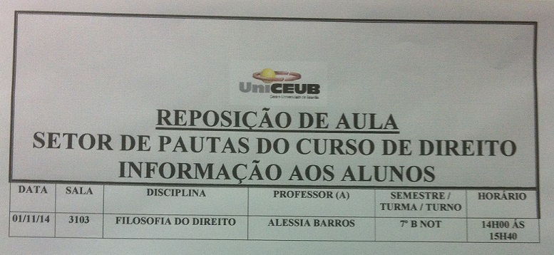 Infelizmente, em função de outros compromissos e ainda considerando a realização do estágio supervisionado aos sábados, não pude comparecer nesta aula.