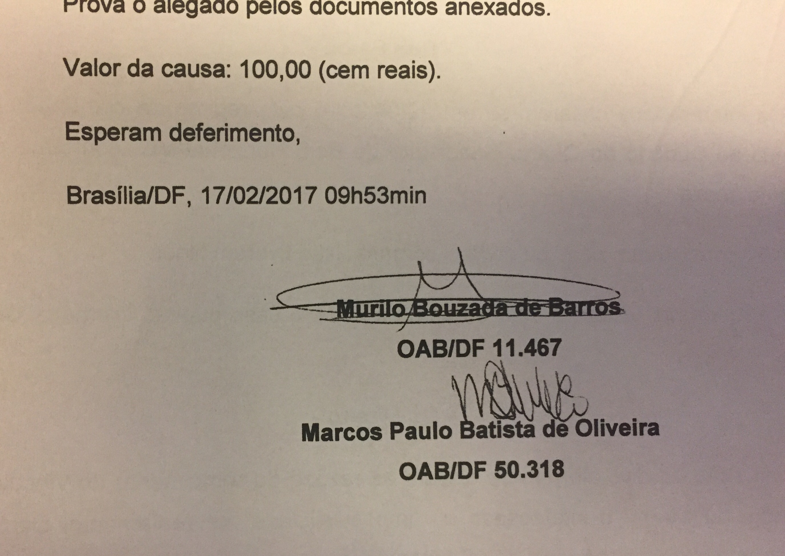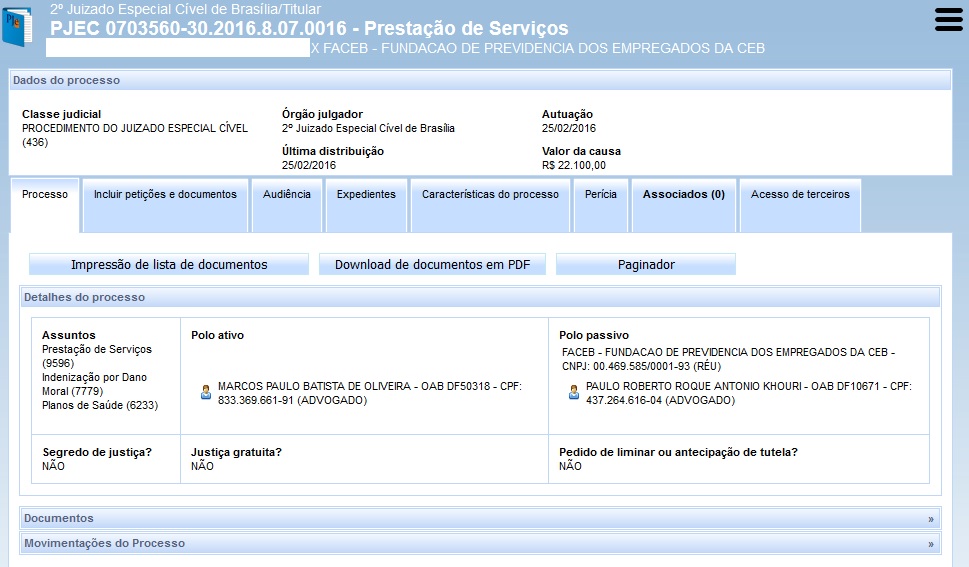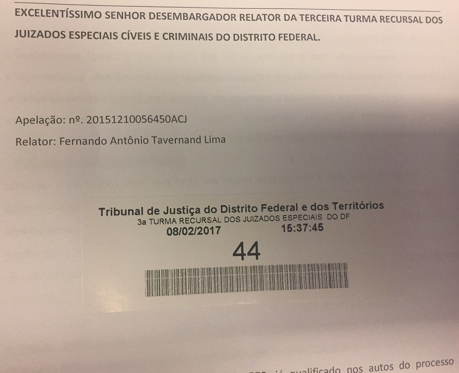 a) Ação Indenizatória – 2º Juizado Especial Cível de Brasília – Ação acima de 20 Salários Mínimos – Processo nº 0703560-30.2016.8.07.0016 – Data 25/02/2016.