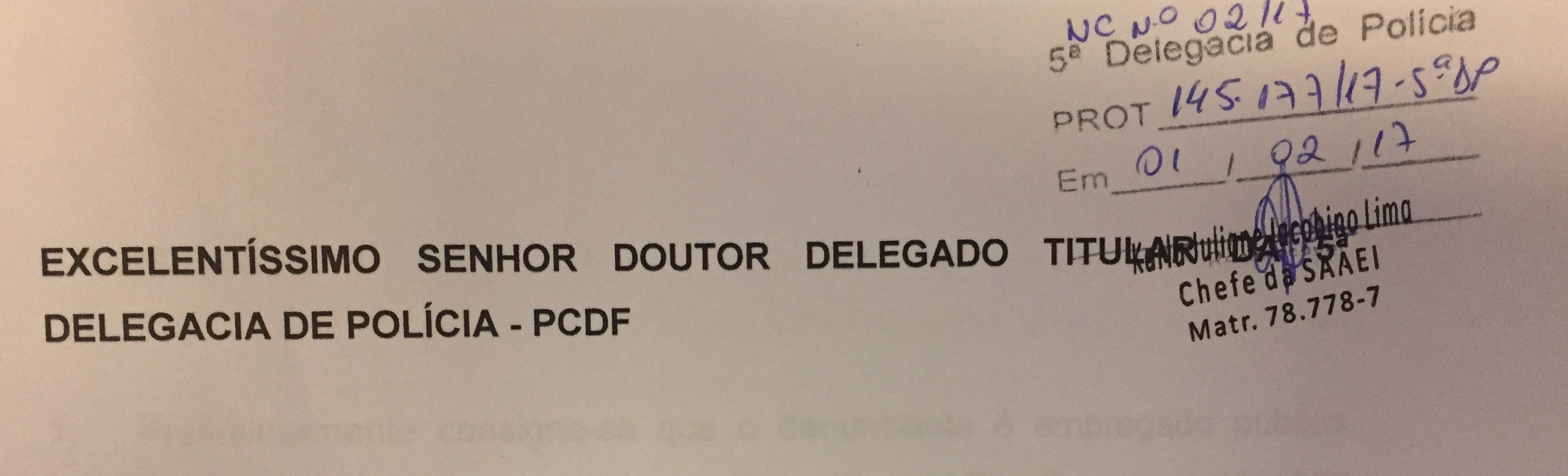 2.1 – Requerimento de instauração de Inquérito Policial (art. 5º, II, §4º do CPP) – 5ª Delegacia de Polícia – PCDF – Direito Penal – Apuração de crimes contra a honra – Data 01/02/2017.
