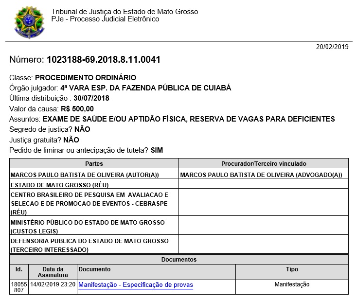 3.6 – Ação Ordinária Inominada cumulada com pedido de tutela antecipada de urgência – 7ª Vara Especializada da Fazenda Pública da Comarca de Cuiabá – TJMT – Processo nº 1023188-69.2018.8.11.0041 – Data 30/07/2018.