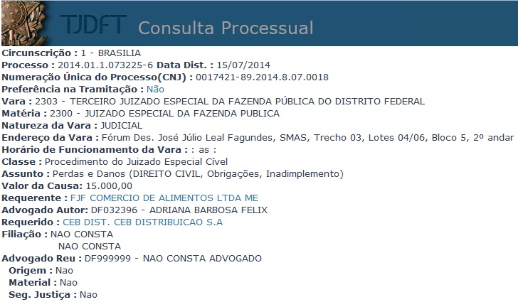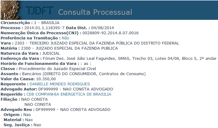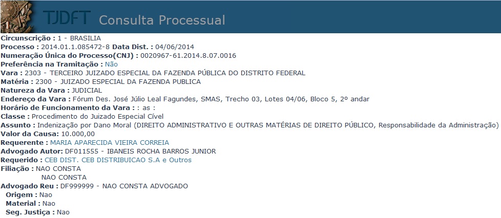 Análise dos 3 processos abaixo, para fins de preparação para as audiências de conciliação, que ocorrerão amanhã, na parte da manhã, no Fórum Des. Leal. Tratam-se de ações de indenizações por falha no fornecimento de energia, ou seja, envolvendo Direito do Consumidor. A novidade com relação as audiências de amanhã é que em uma delas a CEB propõe acordo. Será interessante e desafiador protagonizar uma tentativa de resolução de conflito na fase inicial.
