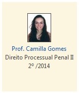 CAMILLA GOMES – Direito Processual Penal II: Excelente professora! Juntamente com a primeira parte do Estágio I (que foi na área de penal), esta cadeira sedimentou os conhecimentos com relação a área de processo penal. A professora Camila, que possui uma excelente didática e conduz as aulas de forma dinâmica, foi capaz de extrair do denso conteúdo ministrado as principais partes, além de incutir nos alunos a vontade (e necessidade) de aprofundar em cada tópico ministrado. As provas, principalmente a primeira (majoritariamente subjetiva), foram muito bem elaboradas e exigiram uma preparação e estudo elevados, pois demandaram conhecimento interdisciplinar. Pretendo cursar direito processual III (optativa), muito em função da experiência tida ao cursar esta cadeira.