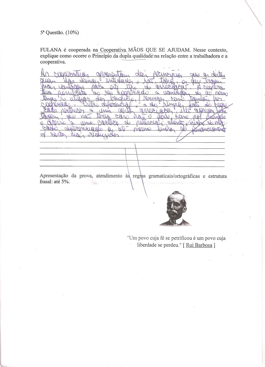 Frases proferidas: ‘Isso aqui não é um curso superior, mas sim um muito superior!’, ‘Dependendo da forma que a cooperativa funciona, há diferentes meios de contribuição do cooperado para com esta’, ‘O alcance da nova lei de cooperativa (12.690/12) será matéria certa na prova! (art. 1º)’, ‘Há diferentes horários para a consideração do período noturno… na zona urbana é entre 22h e 05h, na agricultura é entre 20h e 04h, na pecuária é entre 21h e 5h…’, ‘A cooperativa tem também como cliente os seus próprios cooperados’, ‘Apesar de ter a possibilidade do cooperado agir como empregado e cooperado simultaneamente, é mais comum ser apenas cooperado’, ‘O princípio da dupla qualidade (previsto nos incisos V e XI do art. 3º da nova lei das cooperativas) preconiza que o cooperado é considerado, ao mesmo tempo, cliente e associado’, ‘O princípio da retribuição pessoal diferenciada reza que o cooperado possui ganhos pelo simples fato de ser cooperado – uso do nome’, ‘O princípio da retribuição pessoal diferenciada compara a pessoa cooperada com ela mesmo caso não fosse cooperada’, ‘Uma cooperativa pode ter vários empregados (cara de bolacha) e também vários cooperados (que não possuem relação de emprego)… o que vale é o princípio da primazia da realidade’.
