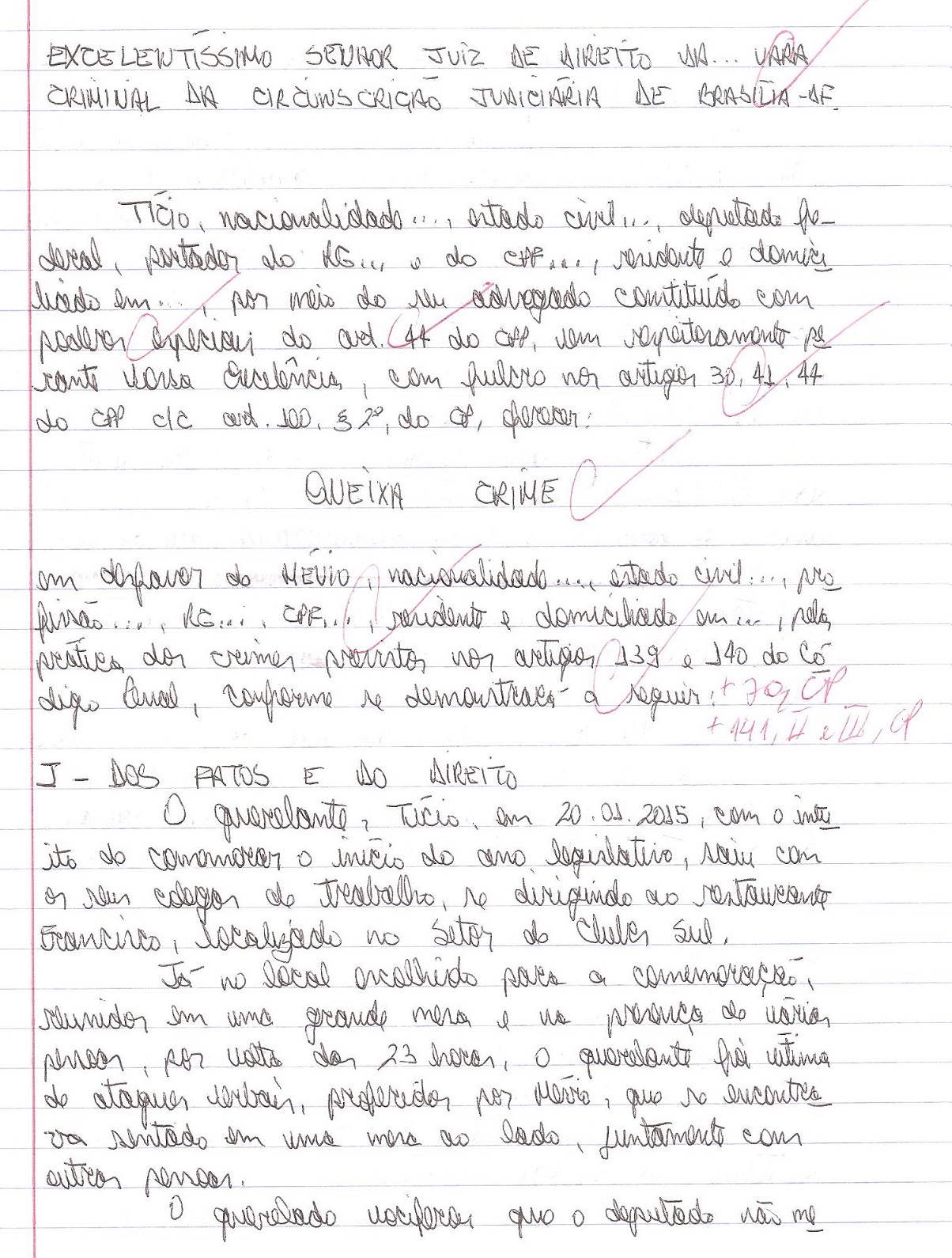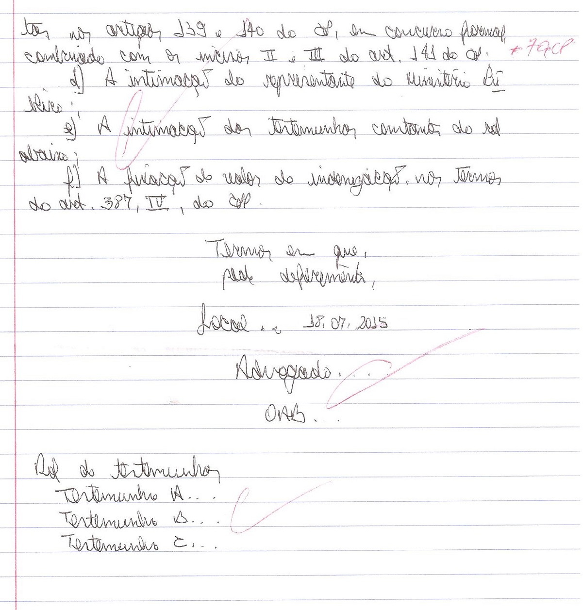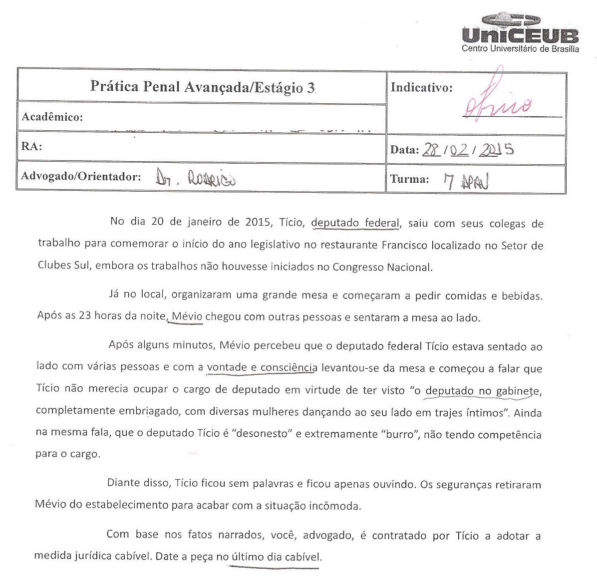 No encontro do dia 07.03.15, durante o Estágio III, o professor fez a correção e a entrega da 2ª peça, realizada na última semana, que tratou de Queixa Crime… e, para a minha surpresa, obtive outro conceito ‘ótimo’… Me sentido como se estivesse no ‘prezinho’, onde a saudosa tia Mara Rúbia desenhava estrelinhas no canto superior dos desenhos e escrevia ‘ótimo’.