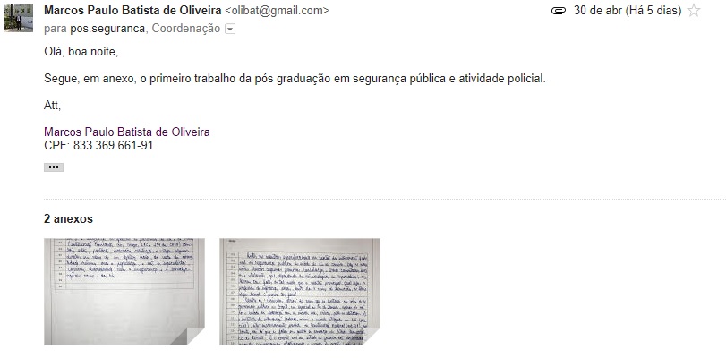 Obs.: Em função da realização da prova oral para o concurso de Delegado do Estado do Mato Grosso, solicitei dilação no prazo de entrega do trabalho, o qual foi deferido.